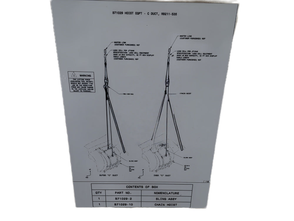 PN:B71029-1;HOIST EQPT-C DUCT RB 211-535; | HOIST EQPT